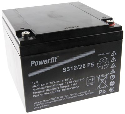 AGM battery 12V 26Ah (C20), sealed, maintenance free, (5 years), measurements: 167x175x125mm, M5 thread, weight ca.8.0kg, VdS G112100